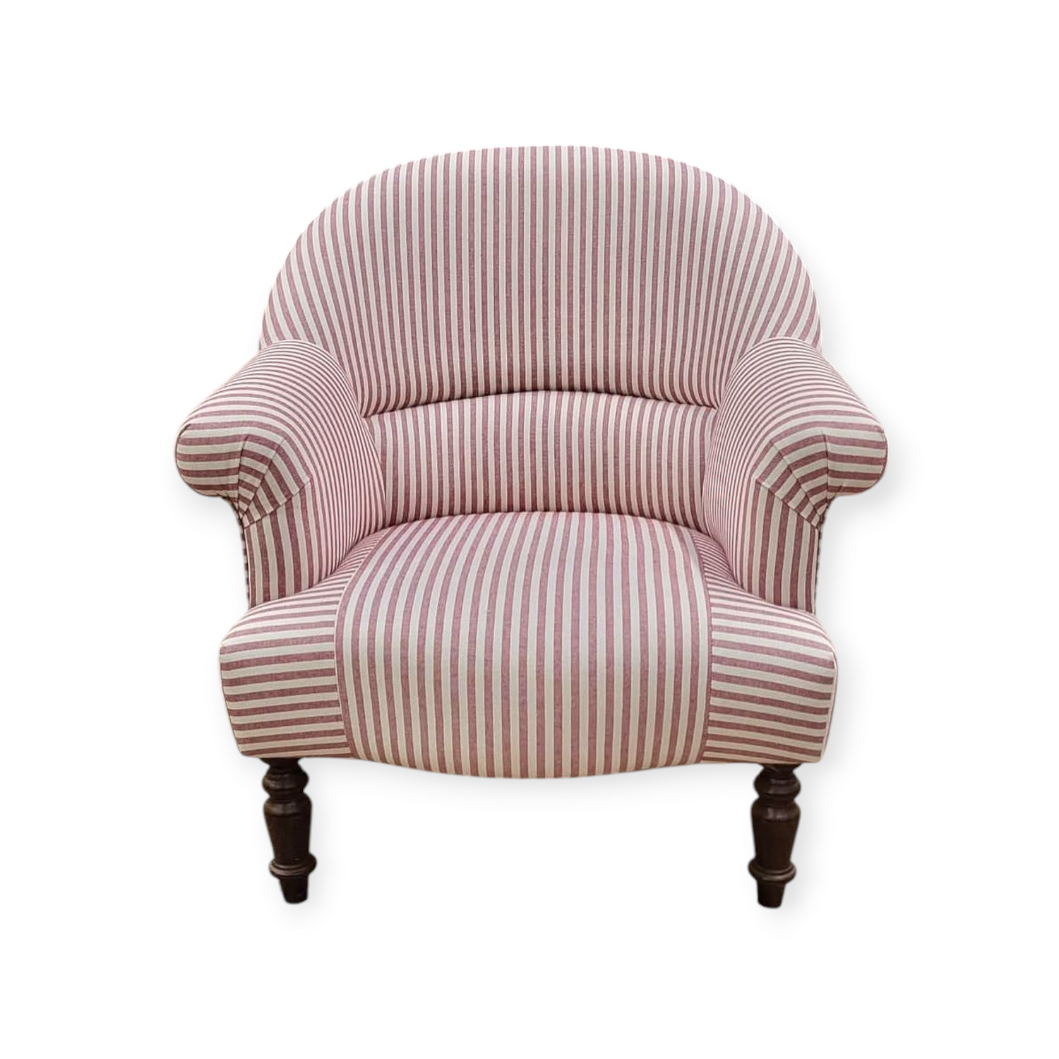 A classic french style tub chair with a double stitched back and deep seat makes the perfect bedroom chair or to cosy up with a good book.